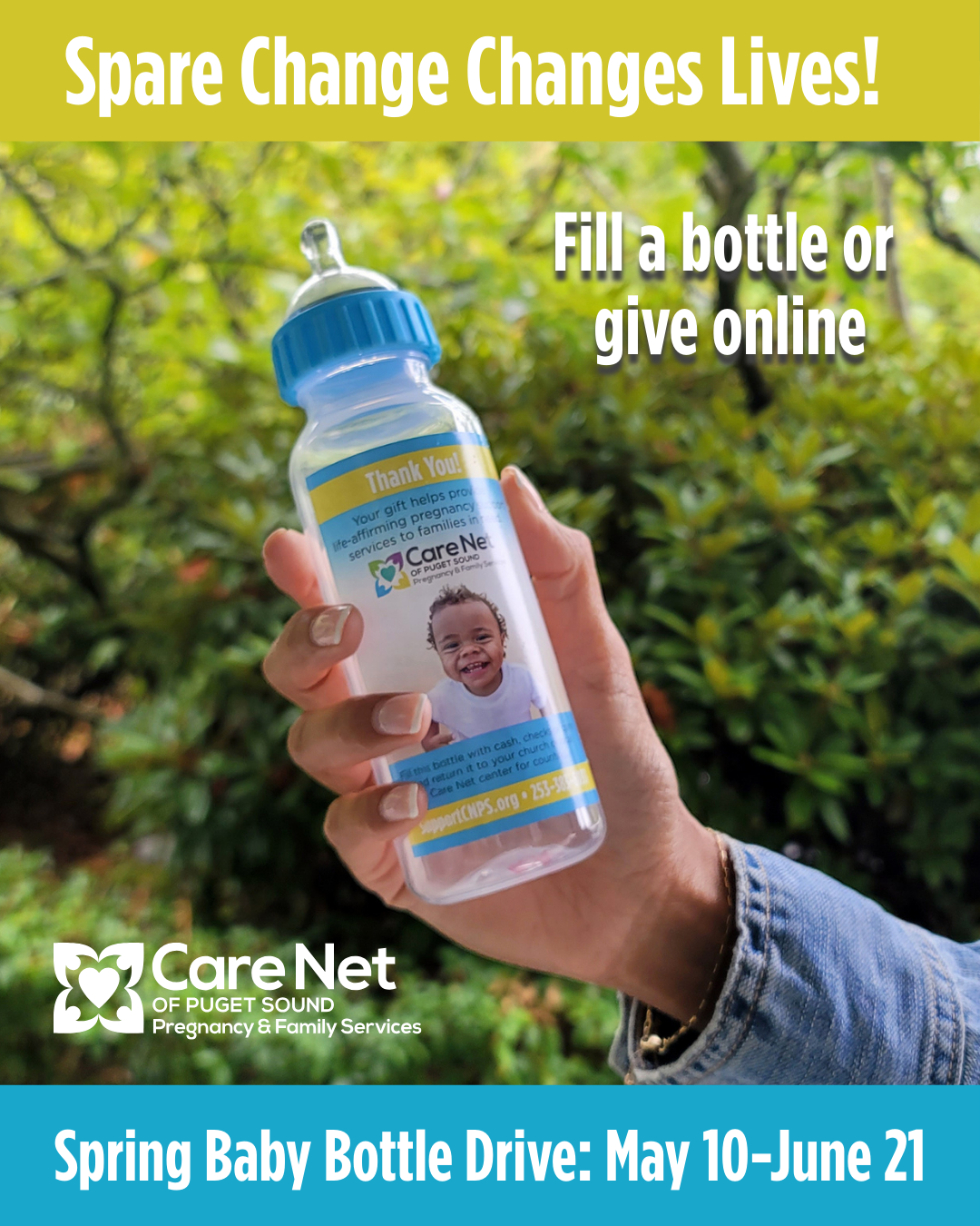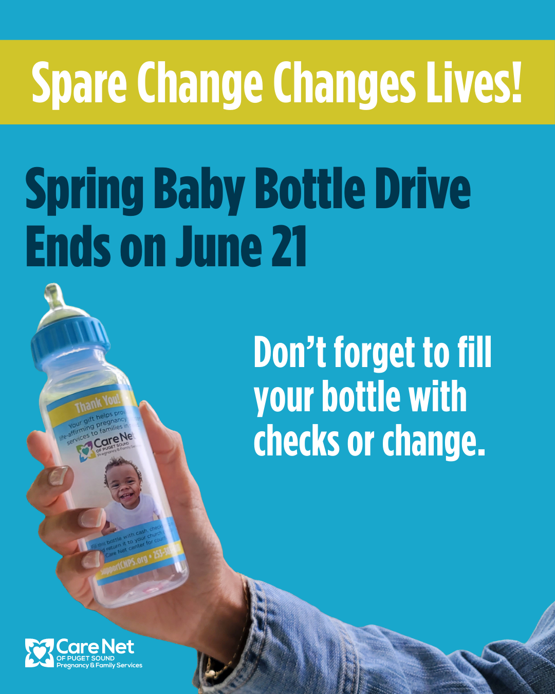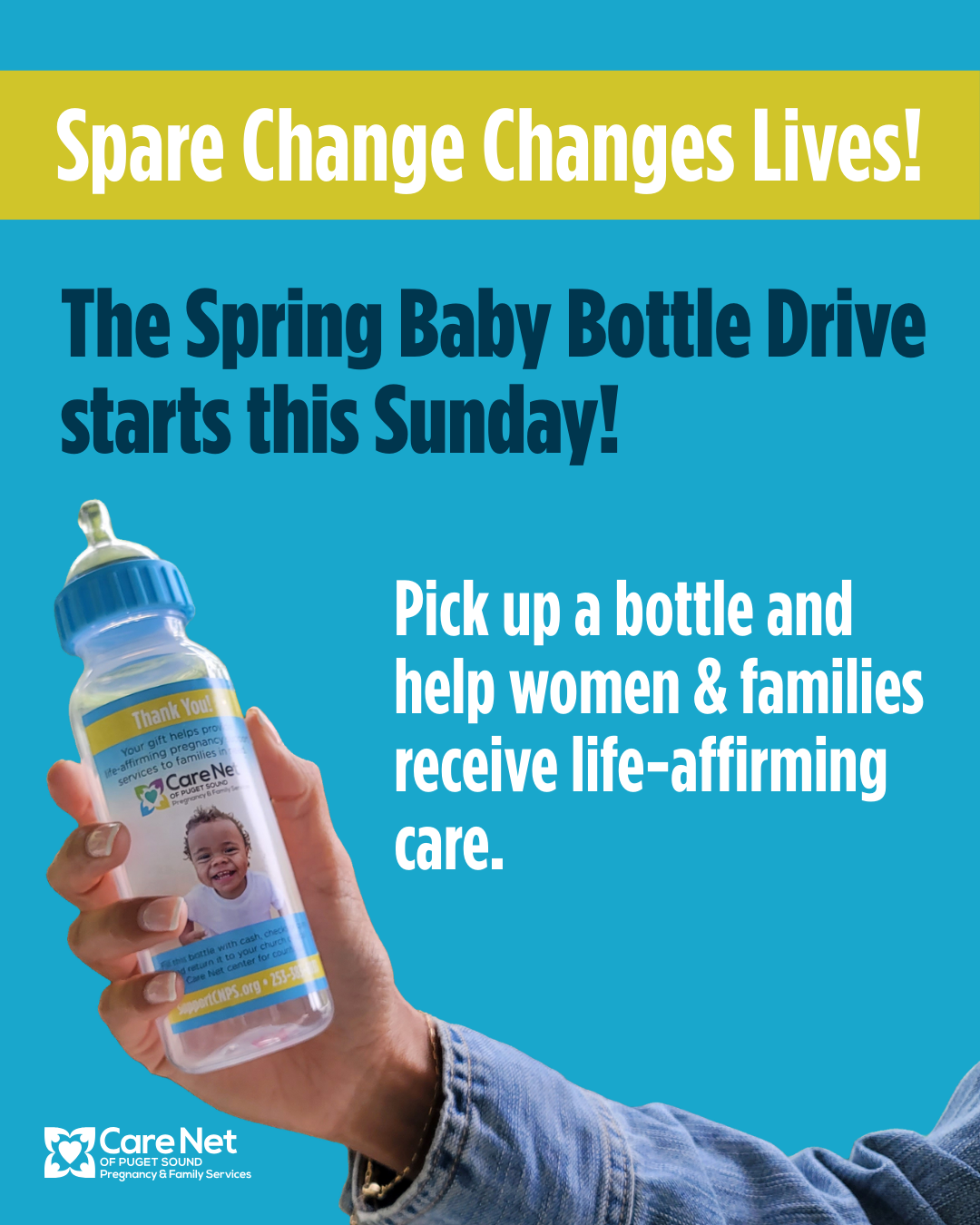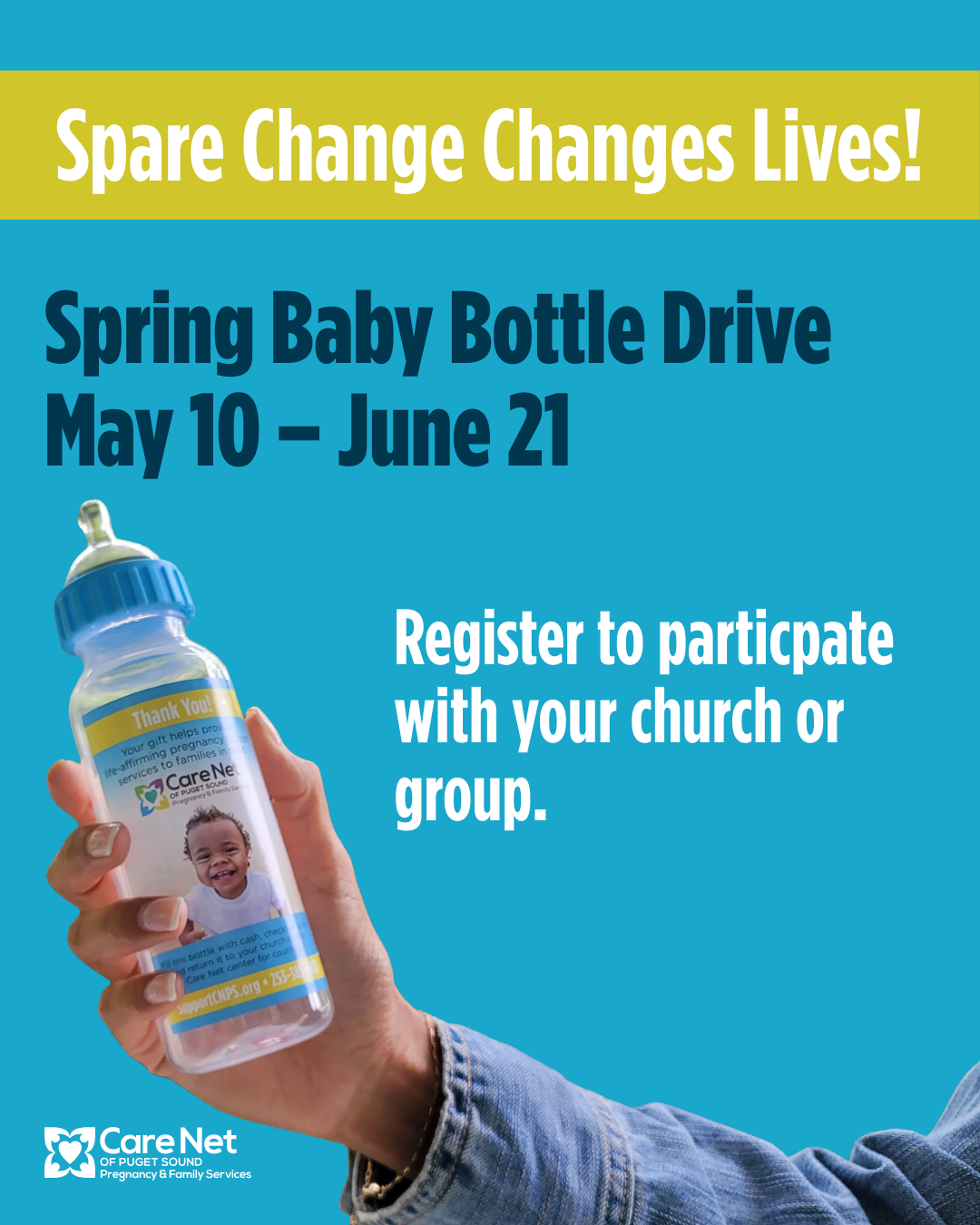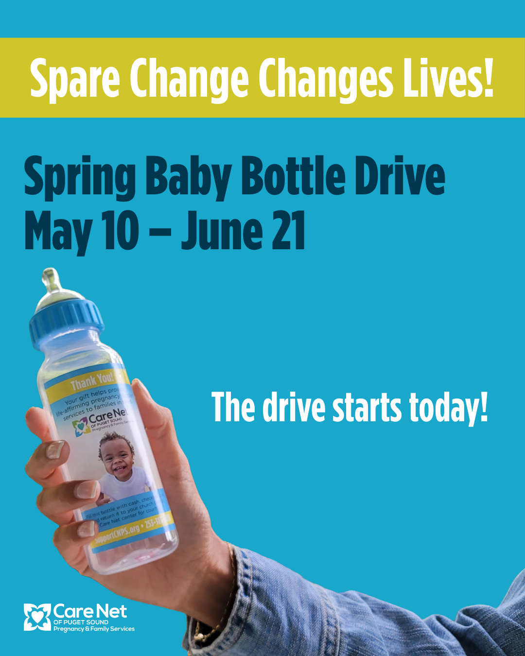 Our Baby Bottle Drive benefitting @carenetpspartners is kicking off on May 11! Pick up a bottle at church, fill it with cash, checks, or change, and return it by June 15. Every dollar helps provide life-affirming support, free pregnancy services, and hope to women and families in need.